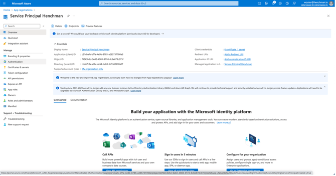 • Tenant ID and Client ID: you can find those in Azure (see the overview tab, on the left):