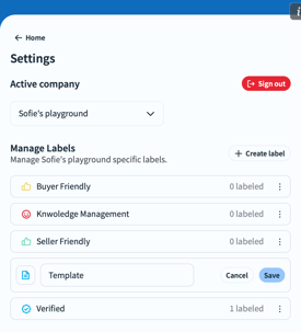 - Click on +Create label to create a new label Or click on the 3 small dots next to an existing label to edit or delete the label