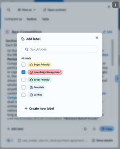Labels are a powerful way to provide additional context to clauses or definitions. These labels, such as ‘template’ or ‘verified’ enable users to quickly recognise specific properties of a clause, shortening the decision process about which clause/definition to choose.