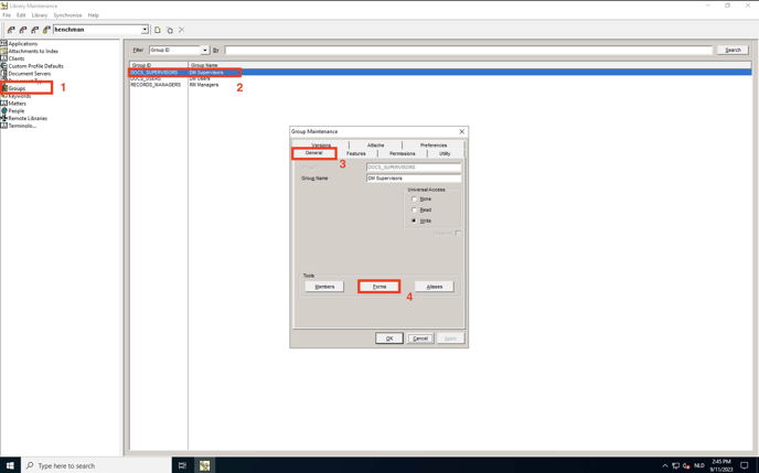 Select the General tab and click the Forms button that is listed under Tools