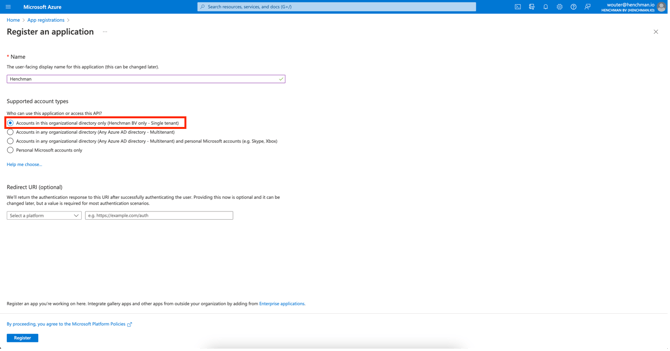 - Go to https://portal.azure.com/ and click on "new registration" on the top left.