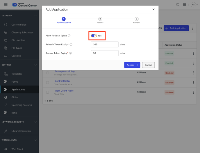 An admin must enable the application in the Control Center via: Control Center > Settings > Applications > +Add Application. The Allow Refresh Tokens option must be enabled, see screenshot: