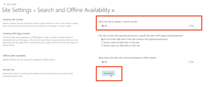 - In the Indexing Site Content section, under Allow this site to appear in search results, select Yes.